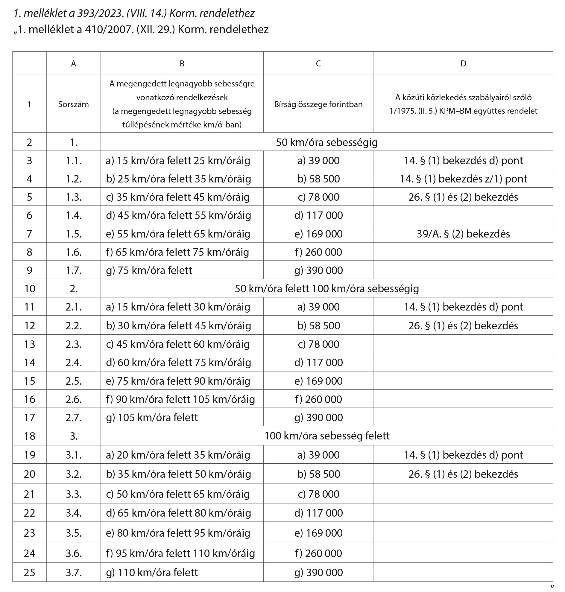 A szabályzó ahhoz viszonyít, hogy a megengedett legnagyobb sebességet mennyivel lépte túl az elkövető.
