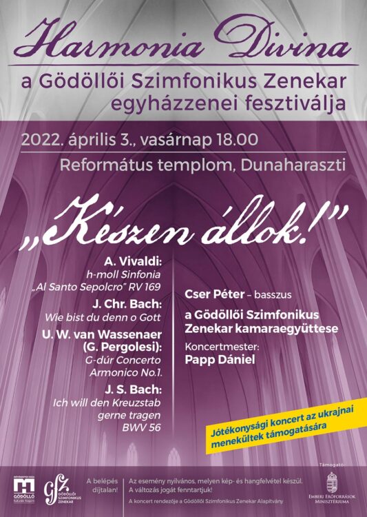 A nagyböjti és húsvéti tematikájú koncerteken befolyó adományokat – együttműködésben a katolikus, a református és az evangélikus egyházakkal – az ukrajnai menekültek megsegítésére ajánlja fel. A befolyt adományokat a felekezetek szeretetszolgálatokon keresztül juttatják el a rászorulóknak.