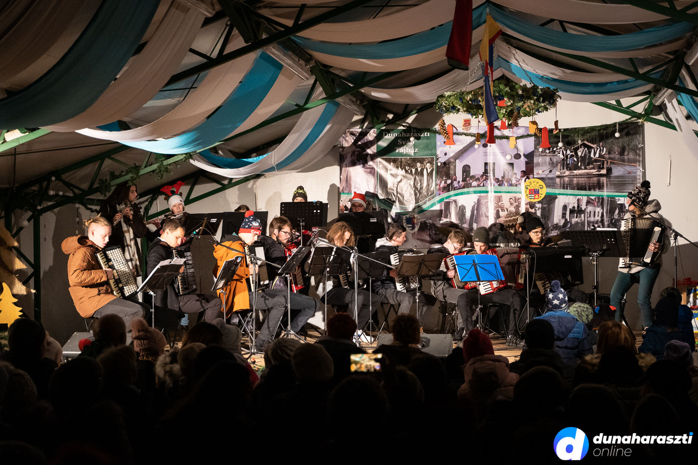 A sátorban iskolák és óvodák adtak műsort, de fellépett a Haraszti Sváb Fiatalok Egyesülete és a Blumenstrauss Kórus is. A kirakodóvásáron, aki akart ajándékokat vehetett a szeretteinek. De egy kis iszogatással és evéssel jótékonykodni is lehetett. Hiszen a forralt bor, a forró tea, a sült kolbász, a palacsinta vagy éppen a fánk árából a rászorulókat segítik. Így gyűjtött a Heimatland Harast Alapítvány valamint az ÖNÖSZ is.