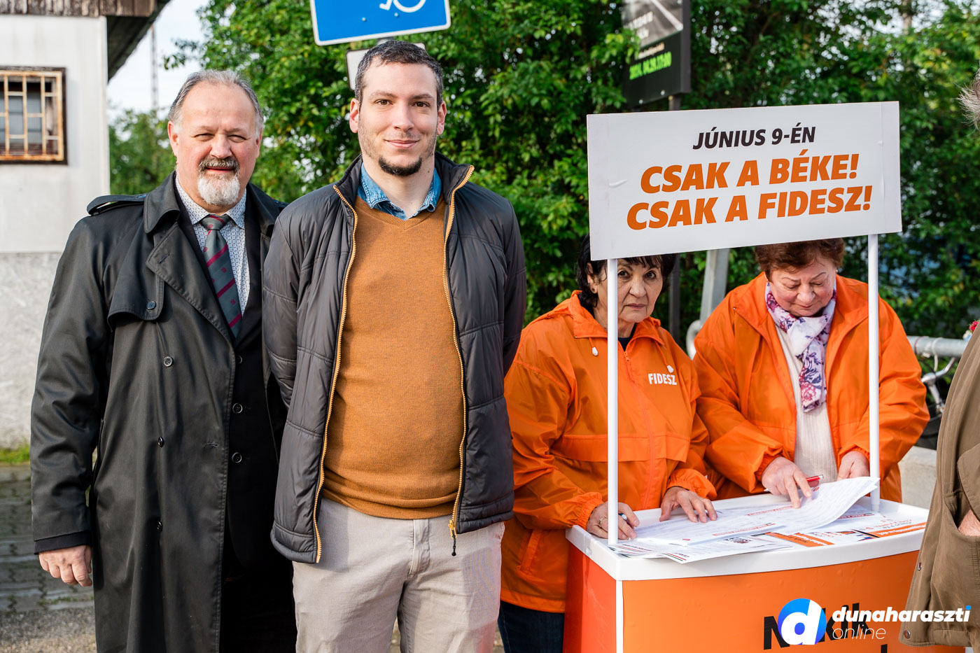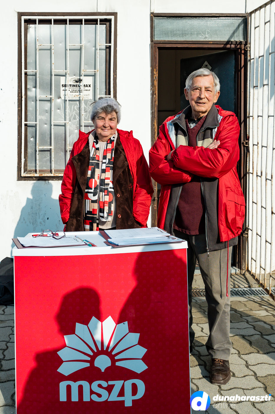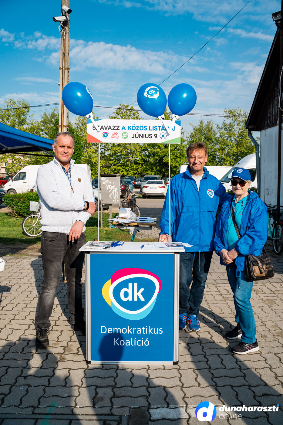 A már megszokott helyen állították fel standjaikat a pártok, jelölőszervezetek a piacon. Néhol egymást váltották a választók, hogy a jelöltek programjairól kérdezzenek, másutt lényegében egyedül árválkodott a jelölt. Kint volt a Lokálpatrióták Dunaharasztiért Egyesülete, a DK, az MSZP és a Fidesz is.