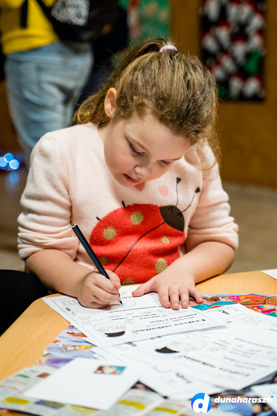 Az oviban interaktív játékok vártak a kicsikre, lehetett üzenetet írni a Mikulásnak, ráadásul egy saját kiállítással is készülnek a gyerekek a nagyszakállú köszöntésére. A legnépszerűbb a mesés büfé volt, ahol nagyon finom nyalánkságokhoz lehetett hozzájutni. Mini koncertekkel is kedveskedtek a gyerekeknek a Dunaharaszti Alapfokú Művészeti Iskola tanulóinak segítségével.