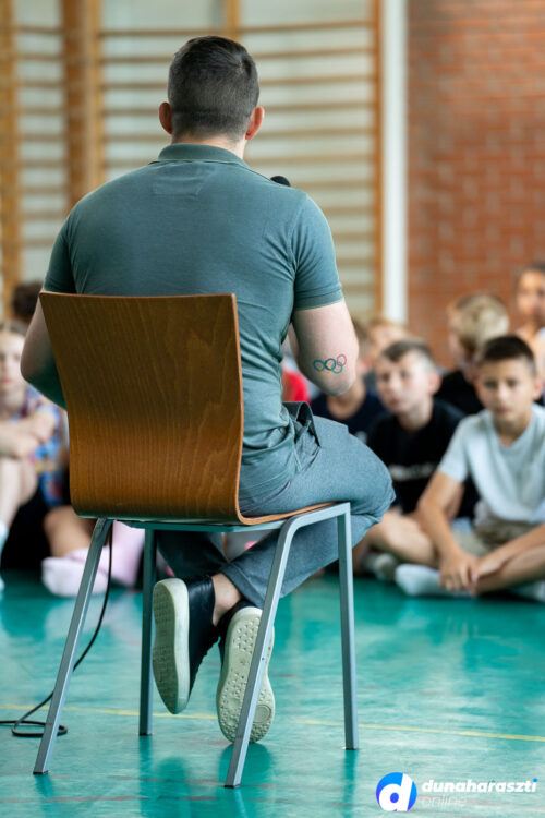 Lőrincz Tamás olimpiai bajnok, világbajnok és négyszeres Európa-bajnok magyar birkózó mesélt a gyerekeknek pályafutásáról, sportágáról. Abban a tornateremben beszélt, ahol egyébként a DMTK birkózó szakosztályának edzései is zajlanak.