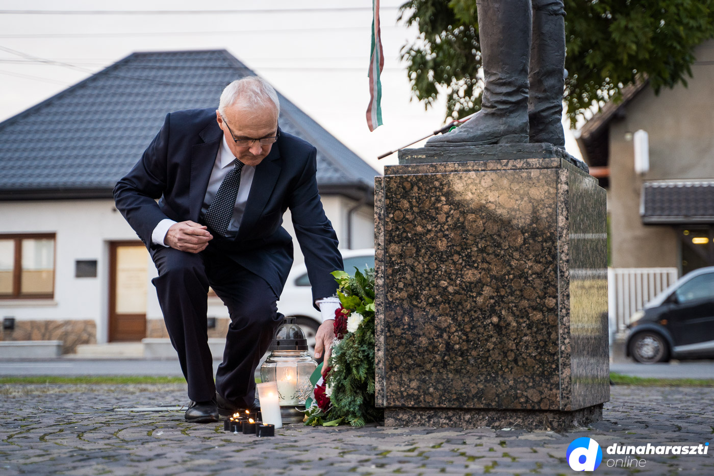 Kücsön Sándor a Petőfi-ligetért Baráti Kör nevében köszöntötte a Petőfi szobornál egybegyűlteket. A koszorúzás után az esemény a Szent Imre templom kertjében folytatódott, ahol a Történelmi Vitézi Rend képviselője felidézte a nemzeti gyásznap hátterét, majd Sztankó Attila plébános mondott ökomenikus imát.