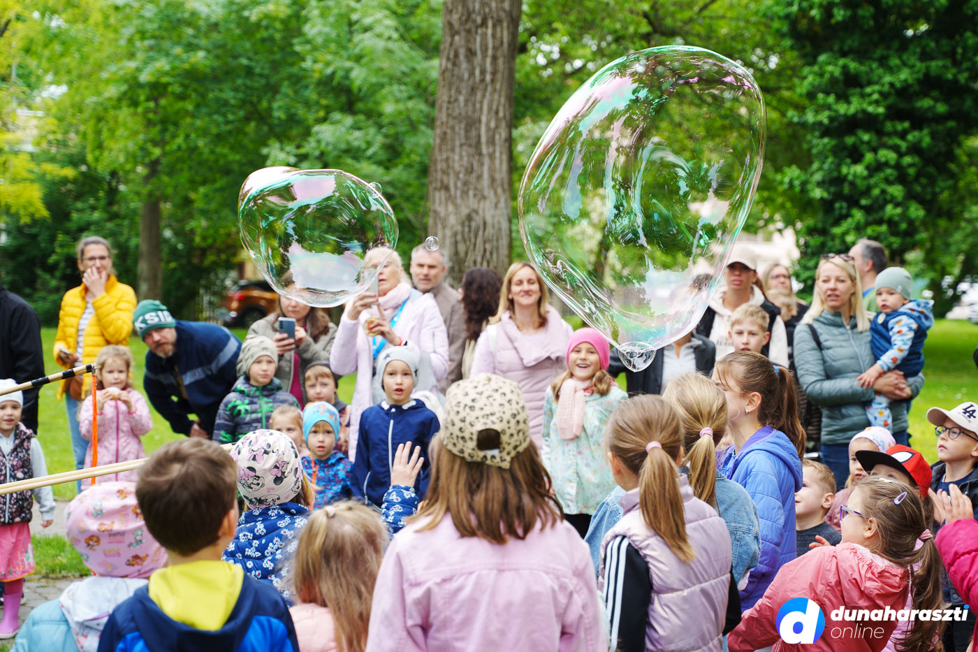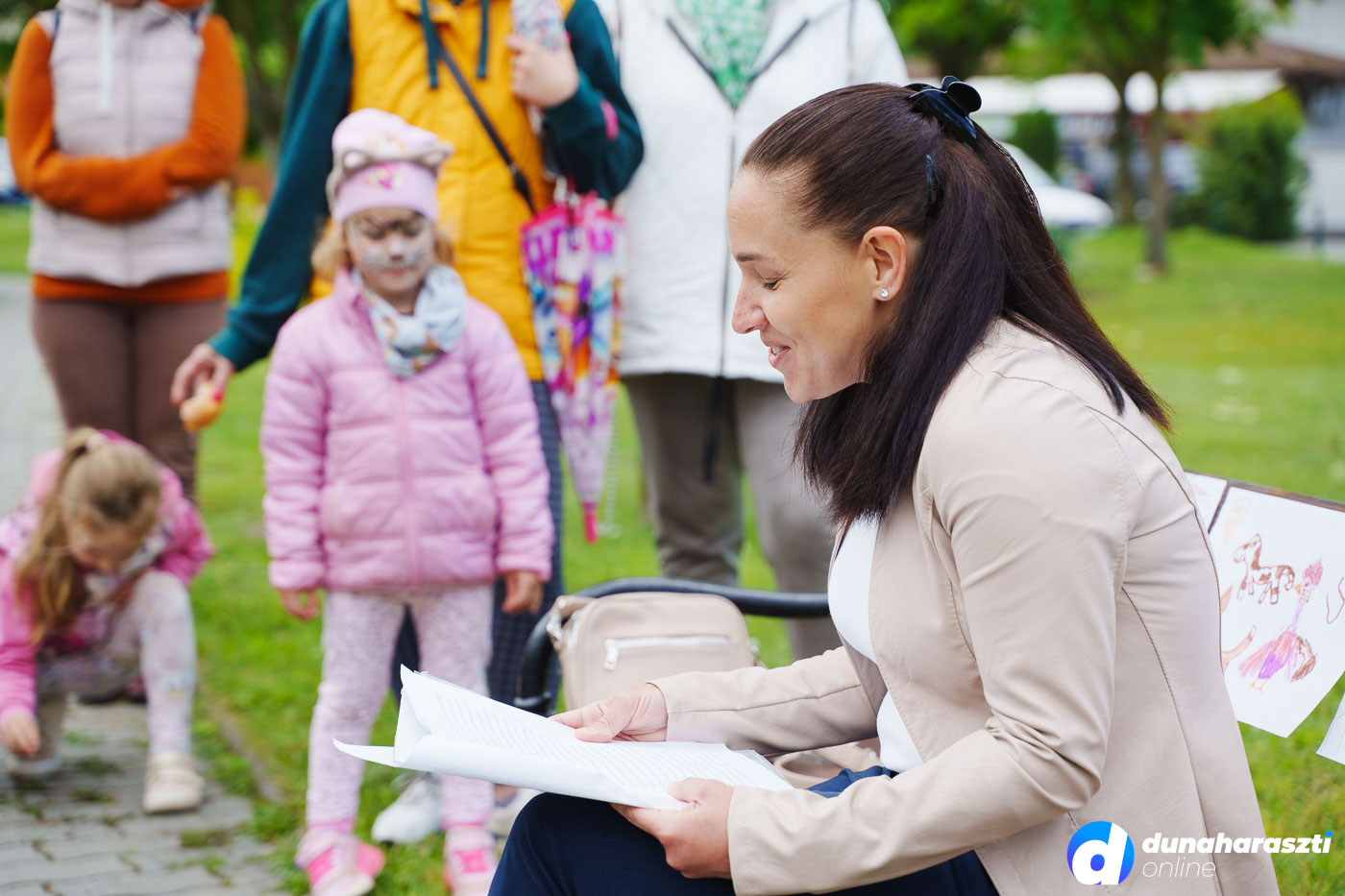 Ezt követően a parkban ismerkedhettek meg a jelenlévők a mesékkel. 5 történetet élőben is elmeséltek azok, akik a hangjukat adták a felvételekhez. Volt óriás szappanbuborékozás, hotdogot és üdítőt kaptak a kicsik és nagyok. De volt olyan meseállomás, ahol preckedlivel, míg másutt Laffert golyóval kínálták az érdeklődőket.