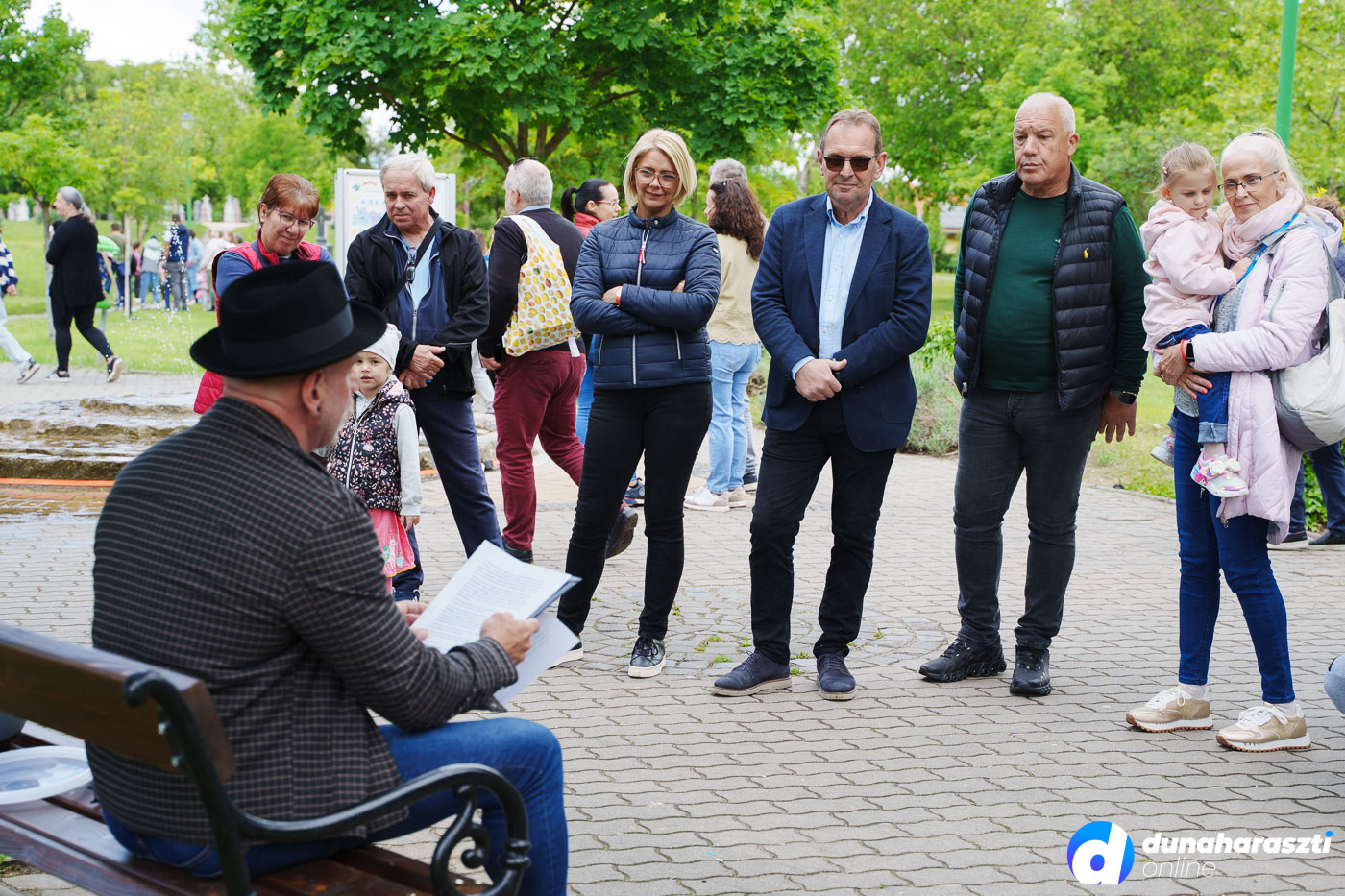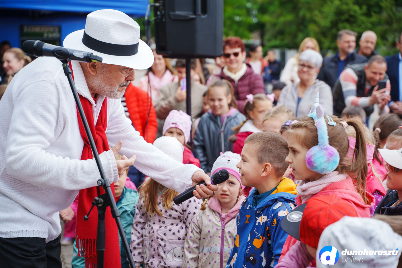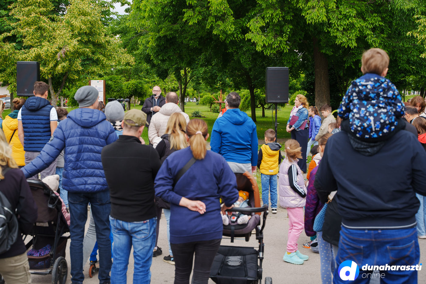 A Mesesétány avató ünnepségén Lehel Endre Dunaharaszti alpolgármestere köszöntötte a családokat. Az esemény díszvendégei Döbrentey Ildikó és Levente Péter voltak. Ildikó írta az egyik olyan mesét amely a Mesesétányon is meghallgatható, Péter pedig műsorral örvendeztette meg a közönséget. Ez utóbbi nem kizárólag a piciknek volt nagy élmény, hiszen szüleik, sőt néhány nagyszülői is a Zsebtévé műsorában maga is nézhette egykoron Levente Pétert. A műsor háziasszonya Hazay Tímea volt, aki a Mesesétány projektgazdája és szerkesztője is egyben.