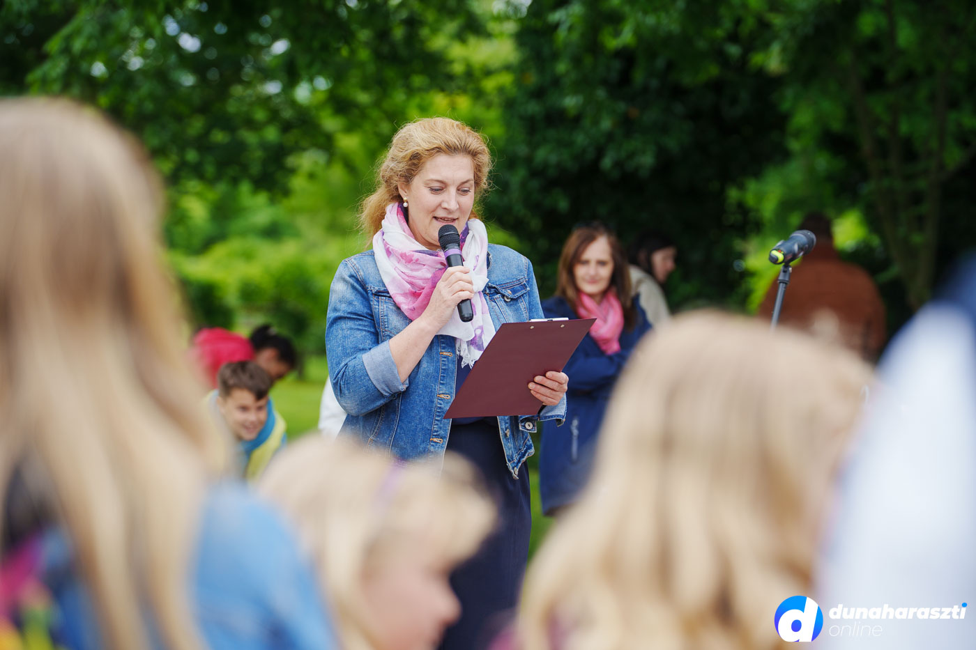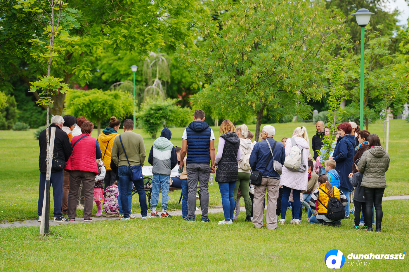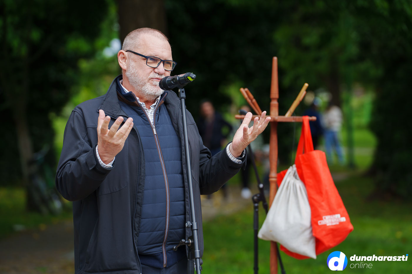 A Mesesétány avató ünnepségén Lehel Endre Dunaharaszti alpolgármestere köszöntötte a családokat. Az esemény díszvendégei Döbrentey Ildikó és Levente Péter voltak. Ildikó írta az egyik olyan mesét amely a Mesesétányon is meghallgatható, Péter pedig műsorral örvendeztette meg a közönséget. Ez utóbbi nem kizárólag a piciknek volt nagy élmény, hiszen szüleik, sőt néhány nagyszülői is a Zsebtévé műsorában maga is nézhette egykoron Levente Pétert. A műsor háziasszonya Hazay Tímea volt, aki a Mesesétány projektgazdája és szerkesztője is egyben.