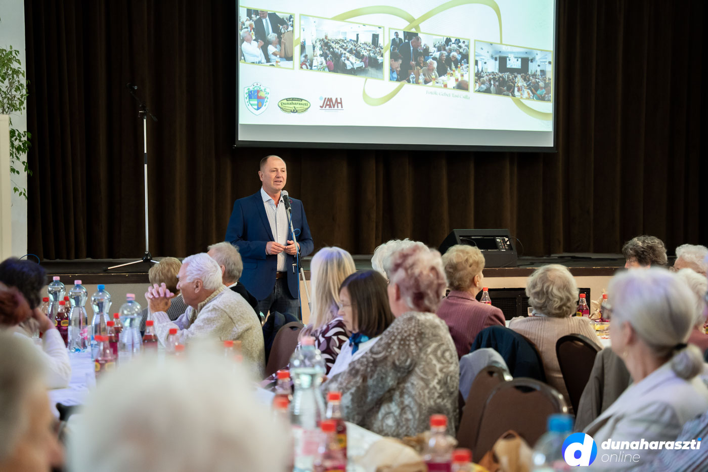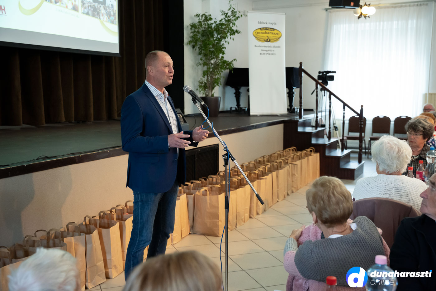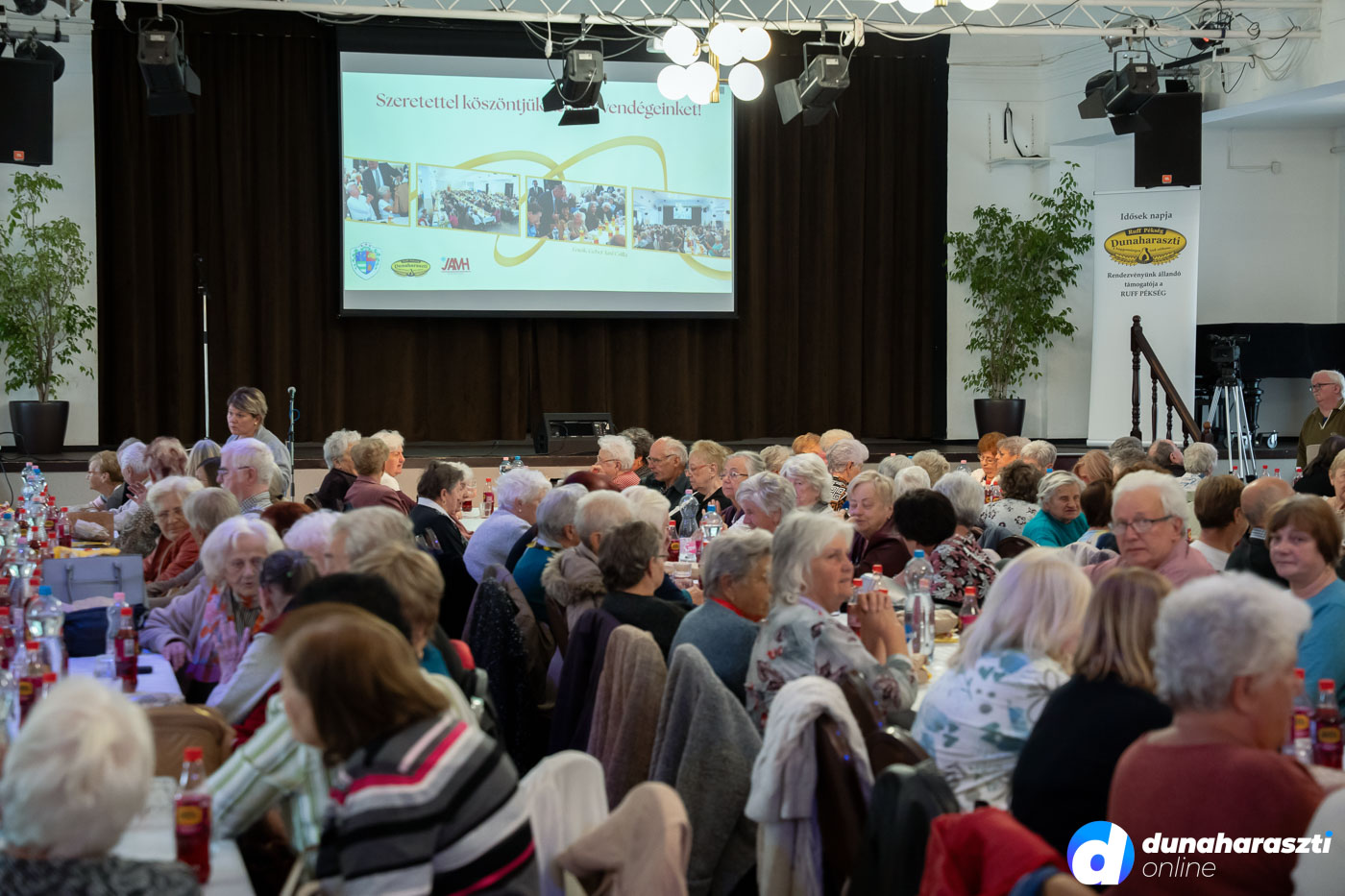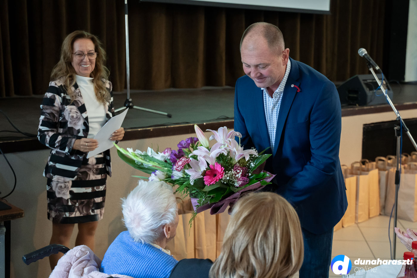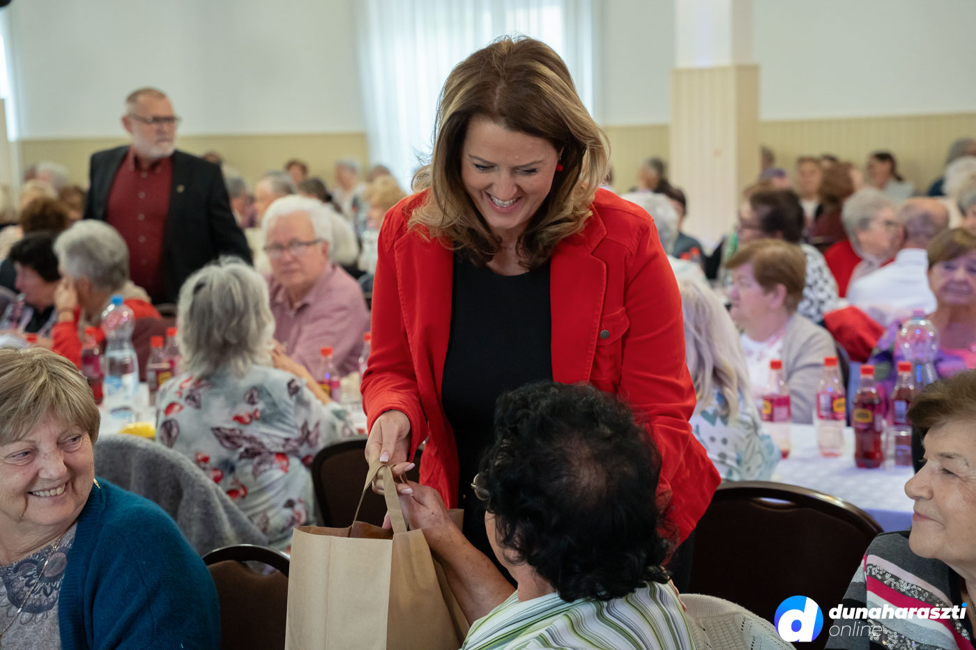 A József Attila Művelődési Házban vendégelte meg a város az időseket, akiket először Galó Anita intézményvezető, majd Dr. Szalay László polgármester köszöntött. Az 50 legidősebb haraszti lakos ajándékcsomagot kapott, köztük Váczi Andrásné Lacza Teréziát, aki éppen ma (2025.10.02.) ünnepli a 100. születésnapját. A csomagokat a képviselő-testület jelen lévő tagjai, Karl József, Kücsön Sándor, Láng Norbert, Lehel Endre, és Vojtehovszki Beáta adták át.