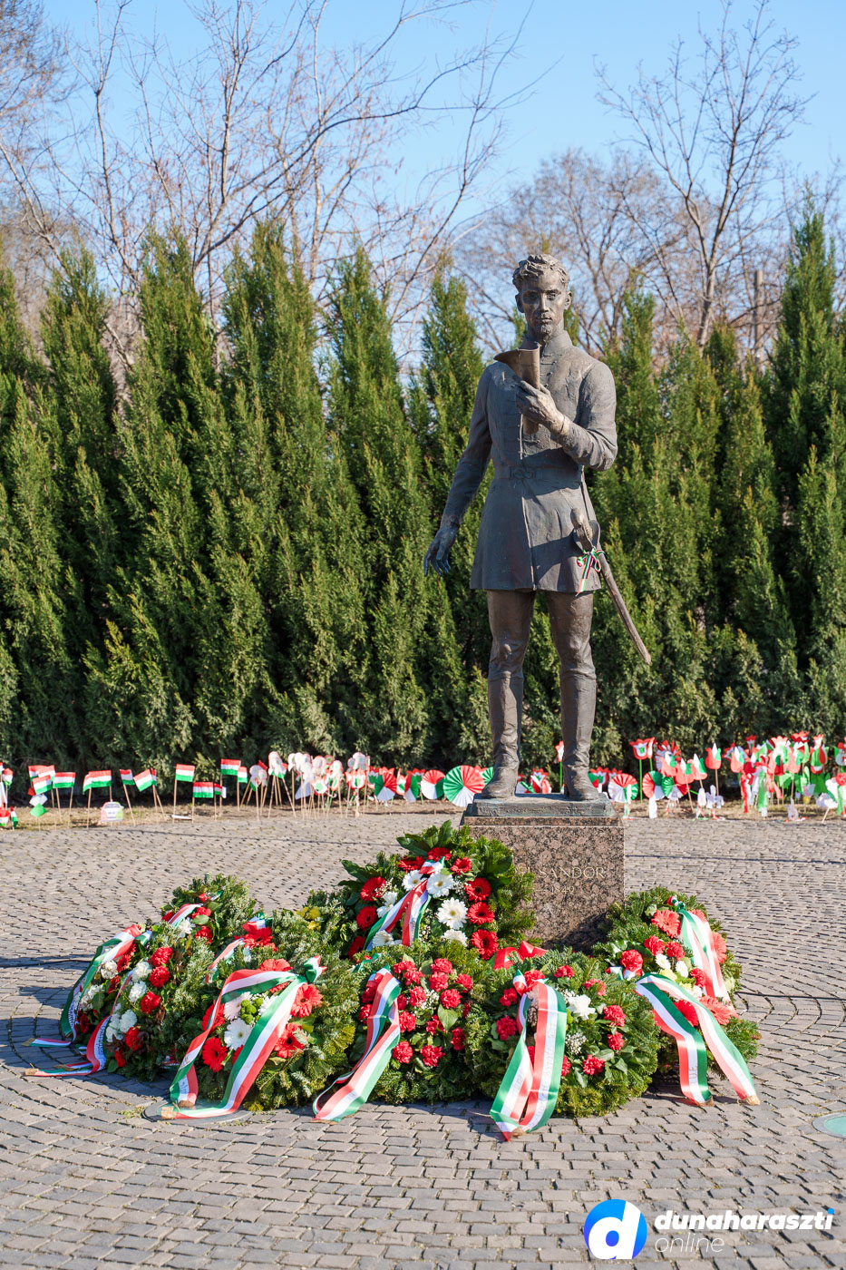 A forradalom és szabadságharc tiszteletére rendezett eseménysor a Petőfi szobornál kezdődött, énekkel, szavalattal. Majd az önkormányzat és a városban megtalálható néhány politikai párt, valamint a civil szervezetek helyezték el az emlékezés virágait.